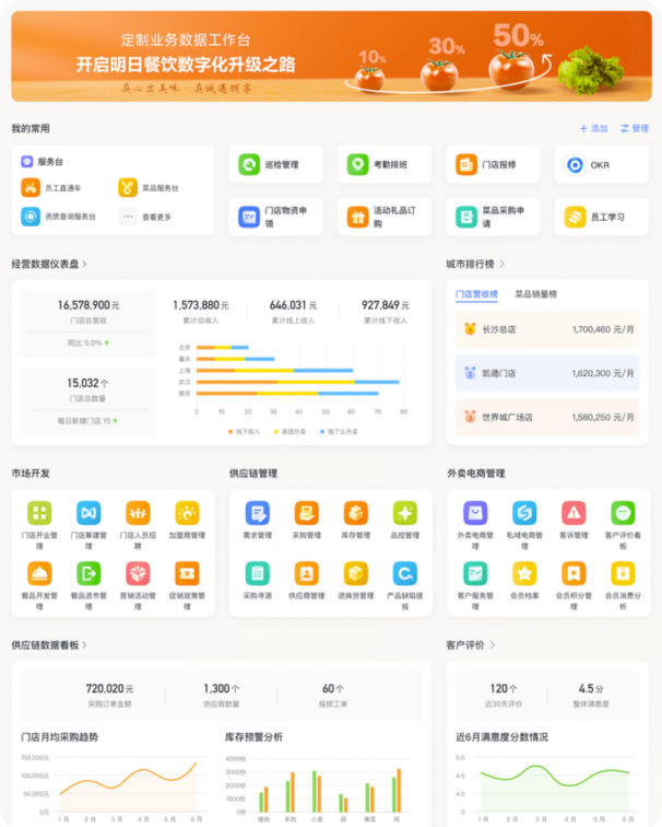 西貝自 2022 年選擇全員使用飛書,實(shí)現(xiàn)總部和門店的高效協(xié)同,并通過飛書 OKR 強(qiáng)化組織戰(zhàn)略落地,打造餐飲行業(yè)數(shù)字化最佳實(shí)踐。公司介紹西貝是中國(guó)餐飲百強(qiáng)企業(yè),旗下西貝莜面村是國(guó)內(nèi)中式正餐經(jīng)營(yíng)規(guī)模最大的品牌。西貝 1988 年創(chuàng)立于內(nèi)蒙古臨河,擁有西貝莜面村、賈國(guó)龍功夫菜、西貝海鮮、九十九頂氈房四大品牌。 2020 年 6 月,入選“ 2019 年中國(guó)餐飲企業(yè)百強(qiáng)”,2021 年 12 月,入選 2021 內(nèi)蒙古民營(yíng)企業(yè) 100 強(qiáng)名單。用飛書構(gòu)建一站式協(xié)作平臺(tái), 1 秒將重要信息傳達(dá)全國(guó) 370 家門店作為全國(guó)最大的中式正餐連鎖企業(yè),創(chuàng)立 34 年來,西貝在全國(guó) 58 個(gè)城市開設(shè)了 370 家直營(yíng)門店,員工 26000 人,每年服務(wù) 7000 萬消費(fèi)者。業(yè)務(wù)的快速成長(zhǎng),讓組織也面臨更大的挑戰(zhàn)。如何做強(qiáng)總部的專業(yè)化分工、實(shí)現(xiàn)各專業(yè)職能部門的橫向打通,增進(jìn)部門之間的協(xié)同關(guān)系,加強(qiáng)總部到全國(guó)門店的順暢溝通,成為西貝在數(shù)字化經(jīng)營(yíng)過程中面臨的重要挑戰(zhàn)。完成向飛書的遷移后,西貝用飛書打通全員通訊錄,總部可即時(shí)聯(lián)系到任意門店的任意一個(gè)員工,員工間可設(shè)置精細(xì)的溝通權(quán)限管控,找人、溝通都更便捷。使用飛書會(huì)議異地溝通,支持千方同時(shí)參會(huì),一鍵發(fā)起企業(yè)內(nèi)直播,讓會(huì)議更高效。會(huì)后飛書妙記自動(dòng)生成錄像及逐字稿,1.8 萬字會(huì)議紀(jì)要只需 5 分鐘,準(zhǔn)確率高達(dá) 98% 以上,讓會(huì)議結(jié)論有據(jù)可循。西貝還將公司內(nèi)的各類文檔遷移到飛書文檔中,并使用知識(shí)庫實(shí)現(xiàn)重要信息的整合、沉淀。使用飛書前,資料沉淀在本地文件中,文件傳達(dá)到全國(guó)員工,需員工層層復(fù)制轉(zhuǎn)發(fā)、效率低。使用飛書后,可以用一個(gè)在線鏈接,和所有員工分享最新版本內(nèi)容,并支持隨時(shí)更新。文檔權(quán)限可嚴(yán)格管控,限制復(fù)制和下載權(quán)限,僅限內(nèi)部查閱,重要信息可 1 秒加急上萬人,使命必達(dá)。用飛書,僅需 1 小時(shí)搭建業(yè)務(wù)表格管理供應(yīng)商抽檢、開票工單餐飲上下游環(huán)節(jié)眾多,有大量非標(biāo)準(zhǔn)化的業(yè)務(wù)場(chǎng)景。這些業(yè)務(wù)場(chǎng)景無法通過成熟第三方系統(tǒng)實(shí)現(xiàn)業(yè)務(wù)數(shù)字化,而團(tuán)隊(duì)靠填表、傳文件、人工匯總的方式運(yùn)轉(zhuǎn),又低效繁瑣。飛書多維表格可靈活搭建輕便的業(yè)務(wù)數(shù)字化工具,系統(tǒng)“想要就能有”,最快 1 小時(shí)即可上線。比如,西貝食品安全巡視組會(huì)定期進(jìn)行供應(yīng)商、門店的抽檢。使用飛書前,所有小組成員需在 Excel 上填寫相關(guān)信息,信息層層上交、匯總,部門逐級(jí)催辦,數(shù)據(jù)統(tǒng)計(jì)報(bào)告制作繁瑣,每次抽查,往往需要 1 整個(gè)工作日專人進(jìn)行資料整理。使用飛書后,團(tuán)隊(duì)將抽檢工作通過飛書多維表格協(xié)作,使用表格分配任務(wù)、系統(tǒng)自動(dòng)提醒還未提交的成員,數(shù)據(jù)分頭錄入、自動(dòng)匯總,并能通過儀表盤實(shí)時(shí)展現(xiàn)數(shù)據(jù)洞察。類似的,通過多維表格搭建開票流程的協(xié)作工具,也讓西貝團(tuán)隊(duì)每年省下 65 人·天。西貝門店與客服中心的同事,經(jīng)常遇到客戶補(bǔ)開發(fā)票的需求。客戶離店后需補(bǔ)開發(fā)票,無法按常規(guī)開票流程自助實(shí)現(xiàn),往往需要客服、財(cái)務(wù)、門店多方協(xié)協(xié)助完成。使用飛書前,客服或門店接到客戶特殊開票需求后,需與客戶人工收集相關(guān)信息;部分開票信息不規(guī)范、不全面,可能需要和顧客二次溝通,效率低下、影響顧客體驗(yàn);相關(guān)信息通過即時(shí)消息與財(cái)務(wù)溝通,無法清晰掌握開票進(jìn)度,協(xié)作成本高;每次開票信息都需要財(cái)務(wù)系統(tǒng)中人工確認(rèn)匹配,操作易出錯(cuò);使用飛書后,客戶點(diǎn)擊客服提供的鏈接、或在門店掃碼,填寫飛書表單,可準(zhǔn)確提交開票信息;系統(tǒng)自動(dòng)通知財(cái)務(wù)同事處理開票;多維表格內(nèi)自動(dòng)根據(jù)客戶所在門店匹配對(duì)應(yīng)開票信息,省去人工確認(rèn);客服完成開票后,系統(tǒng)自動(dòng)提醒客服或門店辦結(jié)情況。從消費(fèi)者到門店員工,再到總部客服、財(cái)務(wù)團(tuán)隊(duì),使用多維表格無縫連通,信息效率大大提高。用飛書搭建學(xué)習(xí)群,自動(dòng)化沉淀組織洞察與思考西貝倡導(dǎo)建設(shè)學(xué)習(xí)型組織,在高管團(tuán)隊(duì)中建立“日清日高”學(xué)習(xí)群(今天完成的事情必須比昨天有提高,明天的目標(biāo)必須比今天更高),鼓勵(lì)每位高管每日分享工作心得體會(huì),并將內(nèi)容匯總、沉淀西貝文化,持續(xù)擴(kuò)大影響力。使用飛書前,西貝需安排專人負(fù)責(zé)匯總?cè)簝?nèi)消息,員工需逐條手工匯總,費(fèi)時(shí)費(fèi)力,資料沉淀在本地文件中,難傳播、檢索。使用飛書后,飛書群內(nèi)機(jī)器人可將群